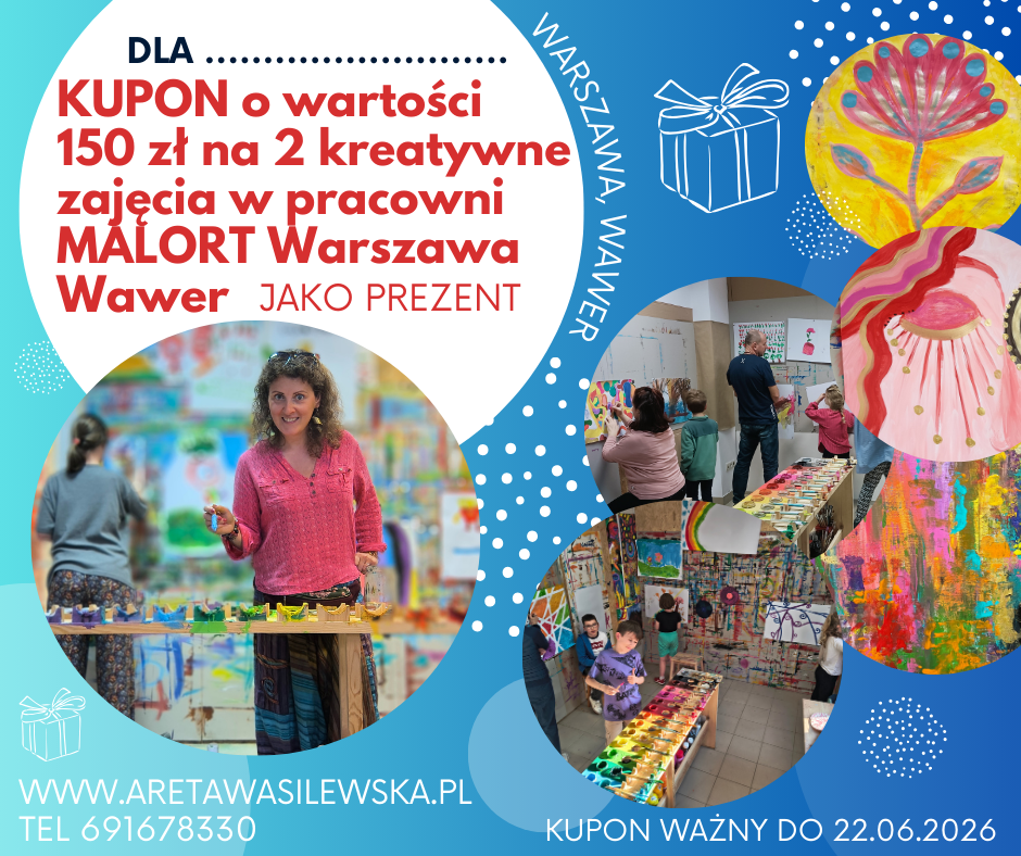 Kup KUPON o wartości 150 zł na 2 zajęcia w pracowni MALORT Warszawa Wawer w Wawrze, w Warszawie. Zajęcia są dla dzieci, młodzieży i dorosłych.