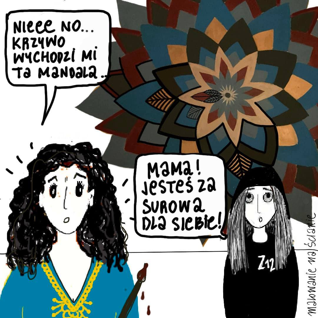 Jestem mamą czwórki dzieci, teraz już nastolatków, które zainspirowały mnie do rysowania w wieku 40 lat… Ozdabiam domy i mieszkania – najchętniej maluję mandale i wzory kwiatowe. Robię tatuaże z henny. Ilustruję opowiadania, zdarzenia, zamieniam dialogi w komiksy. Reperuję i tworzę biżuterię. Odnawiam i ozdabiam meble.