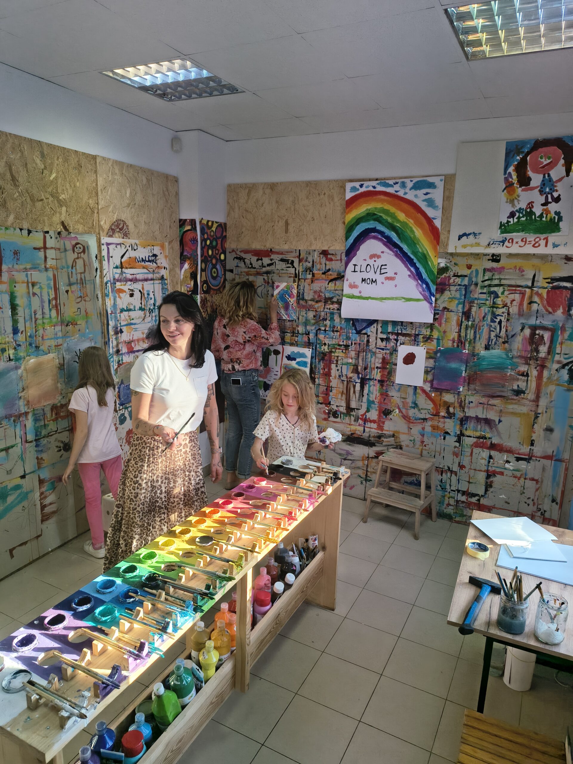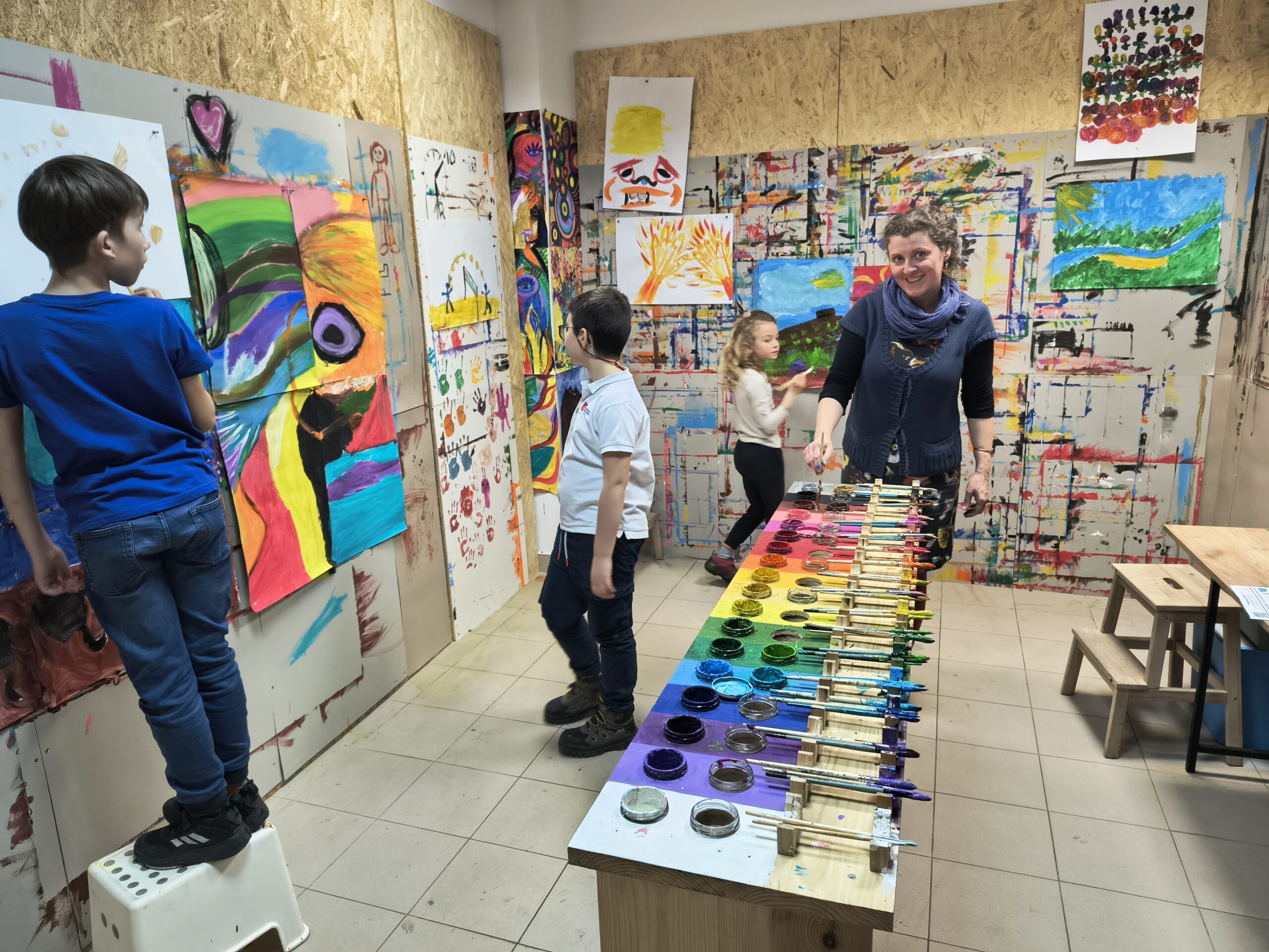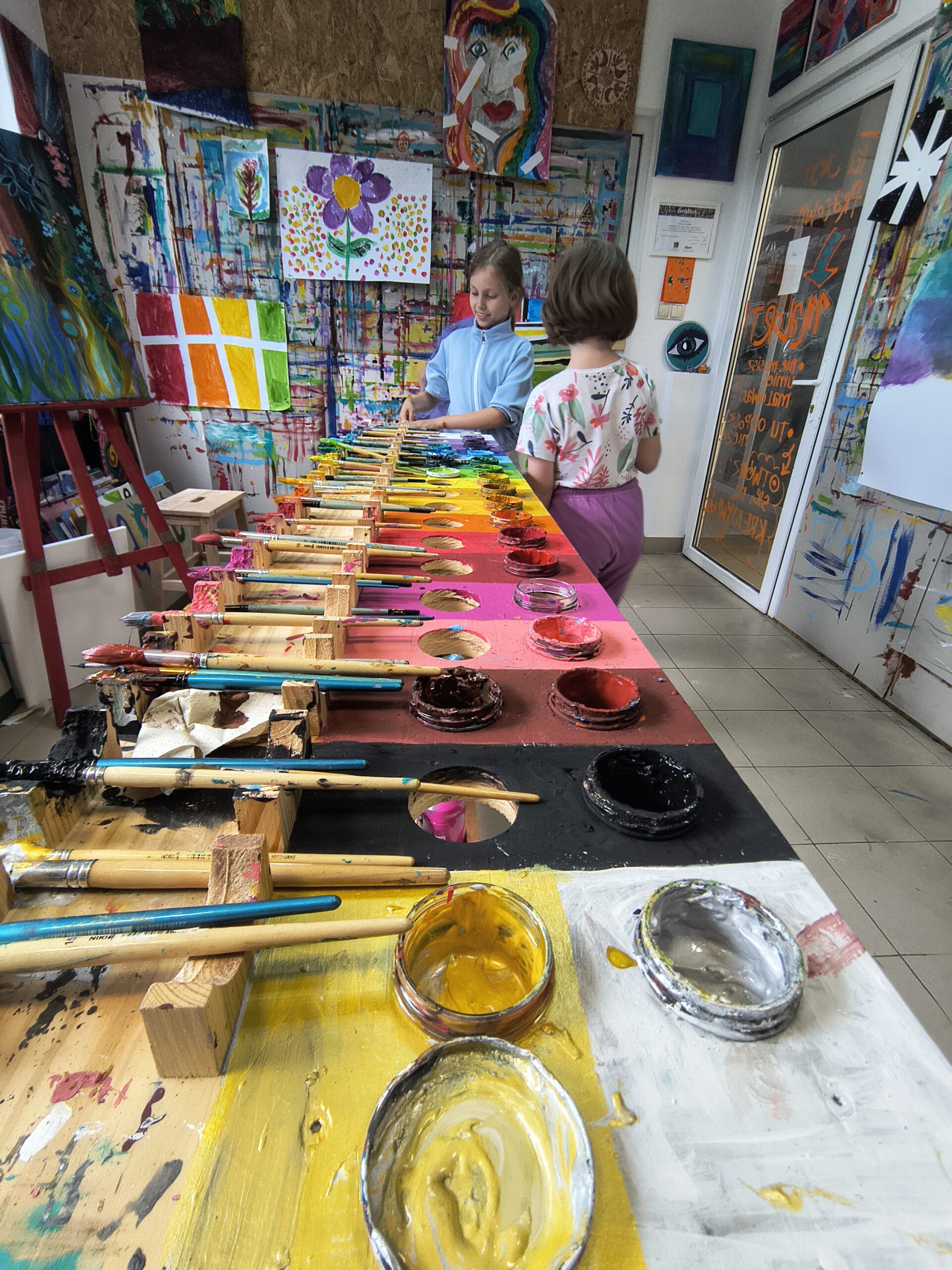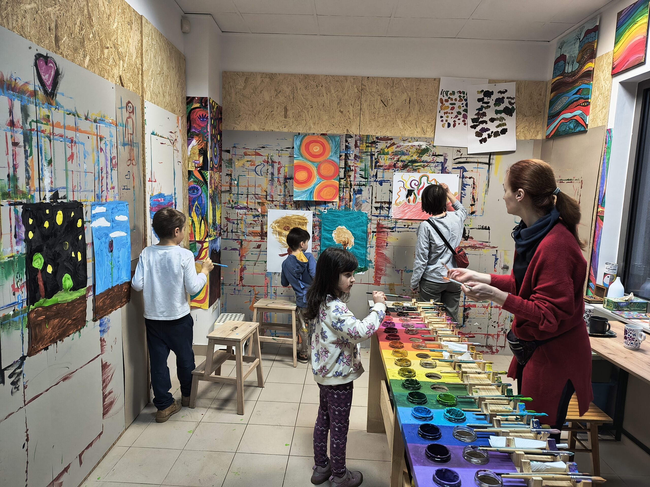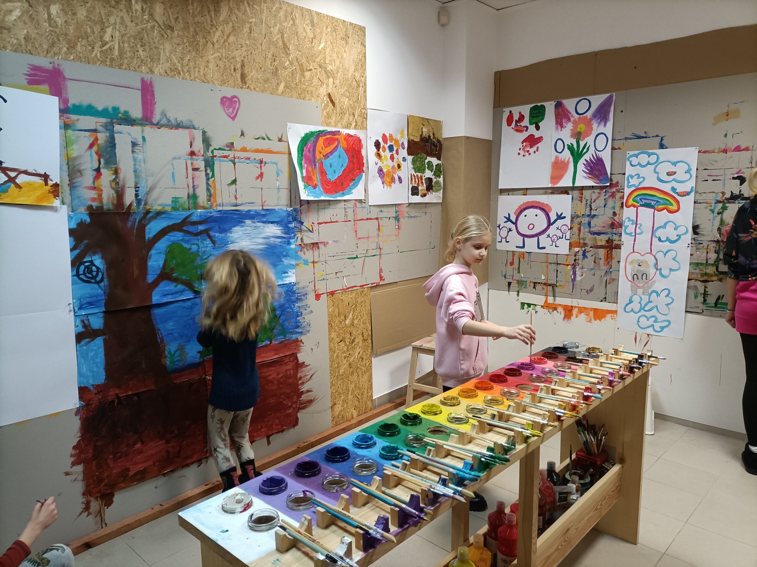 Jest to miejsce gdzie dzieci w wieku od 5 do 105 lat mogą pozostawić swój ślad malarski. Na wielkich formatach na ścianie powstają prace malowane na stojąco. Tutaj nie pouczamy, nie interpretujemy, nie oceniamy. Reguły i rytuały tutaj obowiązujące są stałe, proste i przejrzyste. Pośrodku pracowni znajduje się stół z 18 farbami. Tematy i technika nie są narzucane. Zajęcia trwają 90 minut i odbywają się co tydzień.